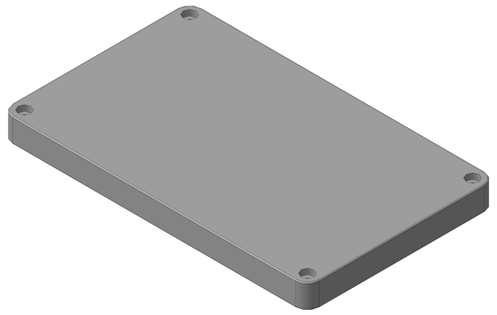 The design also incorporates upper edges to ensure precise alignment of the lid. The top cover is a flat panel with screw holes in the corners, allowing it to be firmly attached to the base for a secure and durable closure.